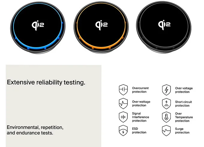 Qi2 25W 支持更高的功率输出,从而实现更快的充电时间,且无过热风险。它提高了电源效率,意味着在此过程中浪费的能源更少。这意味着更短的等待时间和跨受支持设备的更一致的充电性能。