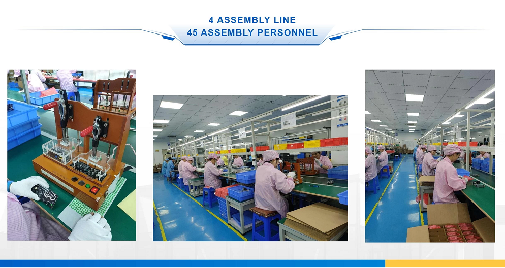 Darüber hinaus verfügen wir über eine 4000 m² große Fabrik mit modernster Ausrüstung. Wir verfügen über 4 SMT-Produktionslinien. Unsere tägliche Produktionsleistung beträgt 5000 Einheiten. Darüber hinaus verfügen wir über 4 Montagelinien mit mehr als 100 fleißigen und qualifizierten Arbeitern, zum Beispiel Scherer, Flicker, Schweißer, Qualitätskontrolleure, Reparaturarbeiter und Montagepersonal.