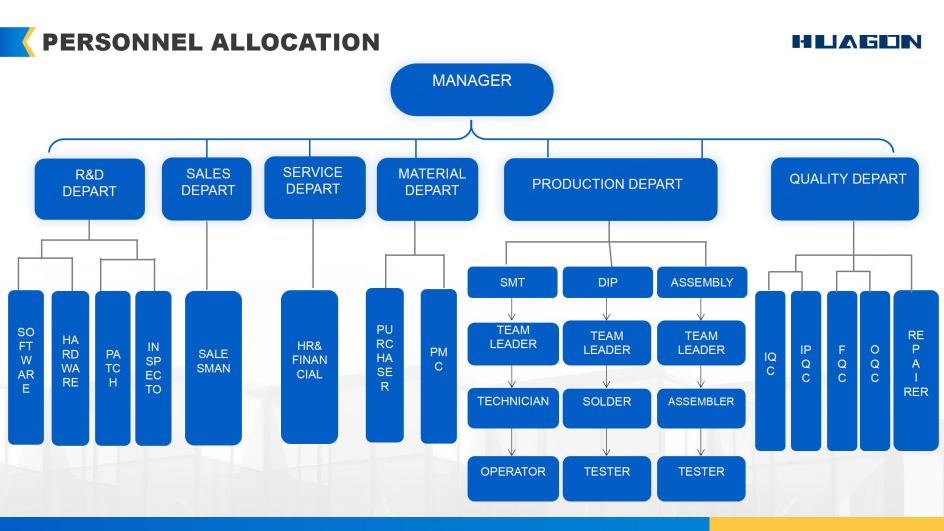 Huagon widmet sich seit mehr als 10 Jahren der kundenspezifischen Anpassung von kabellosen Lademodulen. Wir haben ein professionelles und vielseitiges Team. Das Ingenieurteam besteht aus mehr als 20 professionellen und erfahrenen Ingenieuren, PCBA-Lackierern und 3D-Designern. Hierbei handelt es sich um ein Team, das sich auf die Forschung und Anwendung elektronischer drahtloser Lademodule konzentriert. Was die Produktionsausrüstung betrifft, verfügen wir über 14 fortschrittliche Yamaha-Hochgeschwindigkeitsmontagegeräte mit AOI-Tests. Die Tagesproduktion erreicht 5000 Einheiten. Unser Produktionsteam verfügt über 4 Produktionslinien mit mehr als 45 Montagemitarbeitern, darunter Betriebsingenieure und Qualitätsprüfingenieure.