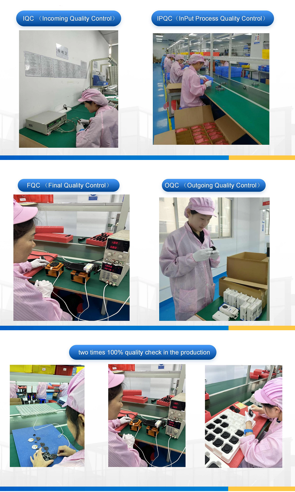 Qualität steht an erster Stelle! Um unsere 100 % Spitzenqualität zu gewährleisten, verfügen wir über IQC (Incoming Quality Control), IPQC (In Put Process Quality Control), FQC (Final Quality Control), OQC (Out Quality Control), um unsere Produktqualität sicherzustellen. Darüber hinaus führen wir zwei Mal eine 100-prozentige Produktprüfung in unserer Montagelinie und zwei Mal eine 100-prozentige PCBA-Prüfung in unserer SMT-Produktionslinie durch.